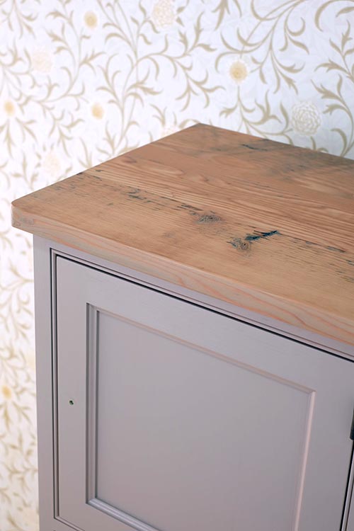 味わい深いオールドパイン材(百年古材)を天板に配し、 本体は使いやすいNEWパインで組み上げた素材ミックスのロッカーキャビネット。 お手本は、ノスタルジックなアンティークのスクールロッカー。