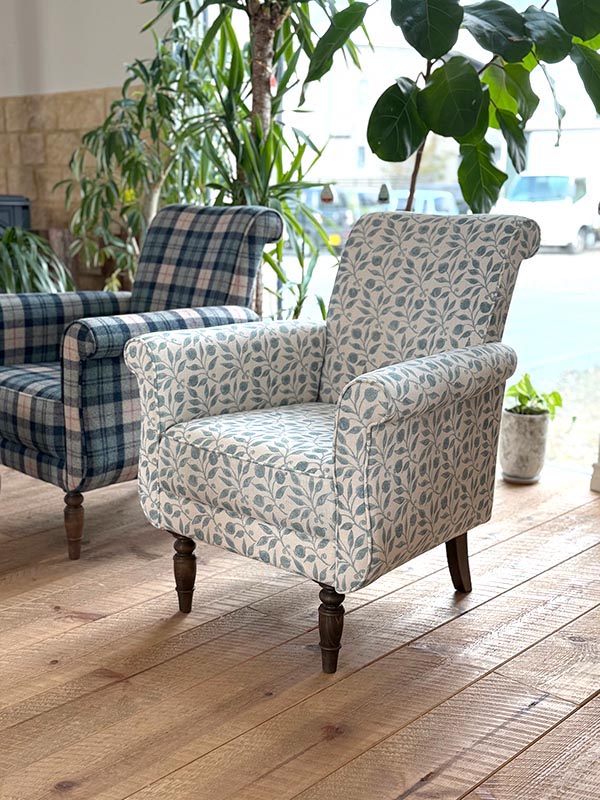 ビアンカソファのクラシカルでコンパクトなボディに小柄なローズヒップのパターンがピッタリですね。