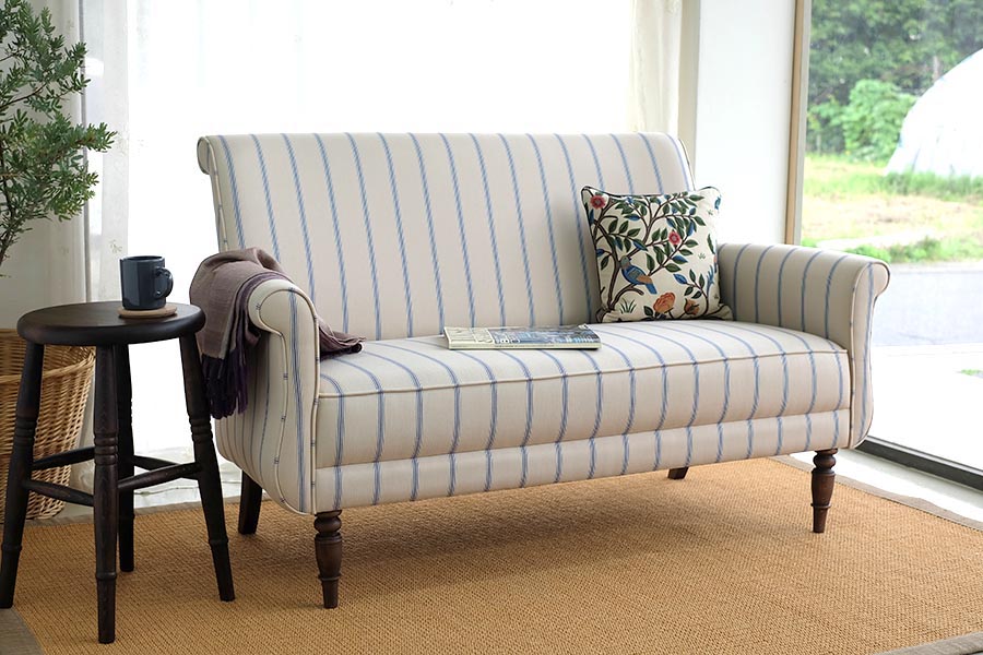 リビングのほか、寝室やホールなど場所を選ばず、置くだけで絵になるソファです。