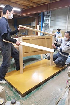 2016年05月05日 今日は、端午の節句。ウチの玄関先でも、五月の風を受けた鯉のぼりが、気持ち良さげに泳いでいました。 和菓子職人の友人にお願いして、柏餅もしっかり準備。今晩は、チョットしたお祝いになりそうです。 さて黄金週間も終盤。店頭には、新作が続々。 あんなテーブルやこんなカップボードも。 こちらは、NEWベッドの試作風景。 図面上では判断できないボリューム感や面取りの感じを実際の部材で確認してみます。 実は、このパーツも2度目の試作。1度目は、「ウ~ン・・・」と唸ってオールボツ。今回は「コレッ!!」という納得のバランスを見つけることができました。それぞれ、言われなければわからない程度の違いですが、そのチョットした違いが全体の印象を決めることも少なくないんです。なので、府に落ちるまでケッコウやり直すことが、すっかりクセづいてしまいました。新作の多くは、こうして練られた末にやっとデビューするんですヨ。そりゃ手間がかかった分カワイくなりますよね。 このNEWベッドも来週には店頭へお目見え。 また少しずつ紹介していきま~す。 Nomura |