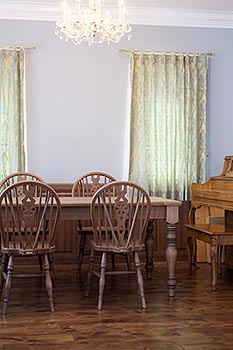 2016年07月08日 「アニバーサリー・フェア」も先月末にて盛況のもと終了しました。本当に賑やかにお祝いしていただき、バックオーダーも150点を超える状況です。モノが売れないと言われる時代に本当にありがたく、皆様に心より感謝です。 画像は、十数年来の長~いおつきあいをいただいているユーザー様ご新居。 今回、新たにホイールバックとターンドレッグダイニングテーブルをお届けいたしました。ターンドレッグは、重厚感のある「クラシカルスタイル」をチョイスされています。 ダークトーンのアルダー材フローリングと腰壁。グレイッシュな壁にシャンデリアとご新居は拘り満載。まさにクラシカル&エレガントな仕上がりです。 合わせてソファも製作中で、イギリス王室御用達ブランド「Sanderson」の生地入荷を待っているところです。こちらもきっとお似合いになること間違いナシ。 またN様家は慶事続きで、秋には御嬢様のご婚礼もひかえていて、そちらのご新居用家具もお声がけいただいています。 こうして皆様にご縁とご愛顧をいただいて17年。 果報者ハーベストです。深謝。 Nomura |