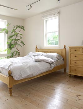 2016年05月28日 4月は、沢山のベッドのご用命をいただきました。特に前半は、ほぼ毎日のようにお問い合わせやご注文をお伺いしていたイメージです。ということで。 今日は、コーナー前々号でもイントロしましたNEWベッド。 以前より展開していましたシャーウッドベッドの後継モデルです。 「後継」といってもイメージは大きく変わりました。 そう。一新デス。 まずコーナーポスト。一回り細い部材にして、全体として馴染みやすいボリューム感に抑えました。 ヘッドボードのパネル部分は、以前の1枚パネルから3枚パネルへ。かつ、両サイドと真ん中のパネルの幅を変えアクセントをつけました。 だいぶと印象変わったでしょう? ロクロ脚が苦手といった方にも、クラシカルなテイストをお楽しみいただけるデザインになったのではないでしょうか。 NEWシャーウッドベッド single ¥98,000- semi-double ¥108,000- double ¥118,000- Nomura |