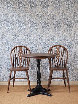 2016年07月23日 コチラ、前々回にご紹介したNEWカフェテーブルの天板ラウンドバージョン。チェアと合わせて、こんなカフェスペースはいかがでしょう。 ウィリアム・モリスの壁紙ともお似合いでは。 お気づきの方もおられるかもしれませんが、わたくしちょっとモリス好きです。 百数十年前にデザインされたモノなのに全く古びない。それどころか、そのオリジナリティは、この時代にとても新鮮に映ります。 「いつかモリスみたいに・・・」 って書くと、恐れ多くて叱られそうですが、それぐらいの意気込みをもって、家具に向き合っていたいと思います。 100年後、ハーベストの家具がアンティークに育った時、モリスデザインと合わせて「どちらも時代に流されない魅力があるなぁ」な~んて誰かに感じてもらえることがあったら最高ですね。 ぜひぜひ、ハーベストの家具をアンティークに育ててください。 ○NEWカフェテーブル*ペデスタルレッグ* ラウンドトップ size Φ650/H740 price ¥88,000 size Φ750/H740 price ¥93,000 Nomura |