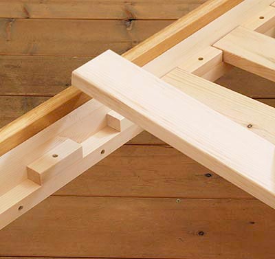 スノコの素材も本体と同じくカナダ産ホワイトパイン材。 板の厚みも27㎜あるので、耐久性も十分です。 |