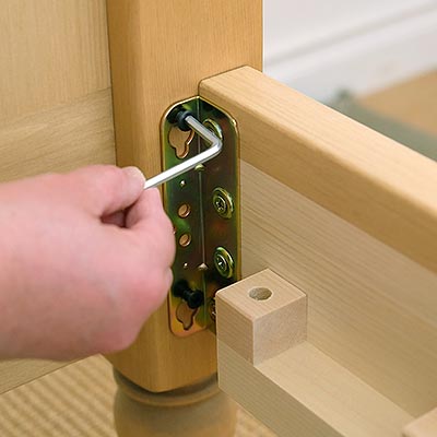 組み立ても簡単。付属の六角レンチでボルトを締め、しっかりとサイドレールを固定するだけ。 |