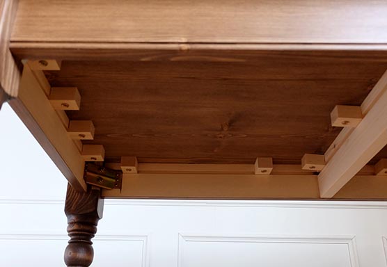 見せ場でもあるターンドレッグは、熟練のろくろ職人が、一本一本丁寧に削りだした美しい仕上がり。ターンドレッグもボリュームのある「クラシカルスタイル」と少し細めでシャープなラインの「プレーンスタイル」をご用意しましたので、お好みでお選びいただけます。