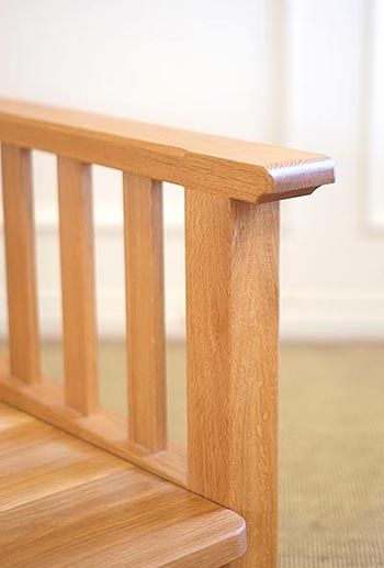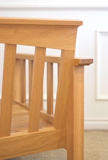 ![]() 座面幅 3P/約165cm、2P/約130cm、奥行きはそれぞれ約50cm。 ![]() 背もたれには、アーチ加工が施されています。 ![]() フレーム座面もスノコでなく、全面オーク張り。 |