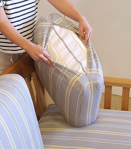 ![]() クッション部分は、メンテナンスの容易なカバーリング仕様。 |